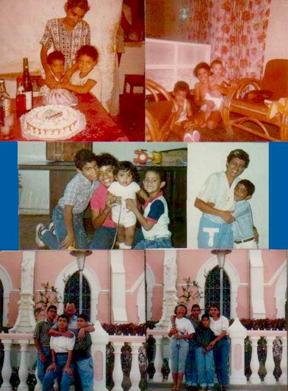 En el barrio, aprendimos a sobrevivir y cuidarnos desde muy temprana edad, pues habían malandros o venían malandros de otros barrios. Siempre se referían a nosotros como los “sometíos” pues mi papá no nos dejaba salir, ya que los muchachos más grandes abusaban de los más pequeños (o como se solía decir antes, “le hacían la maldad a los más pequeños”). En la foto a continuación Pedro es el más pequeño de la foto, salimos con nuestra abuela Regina (QEPD), nosotros 3 y con nuestros padres.