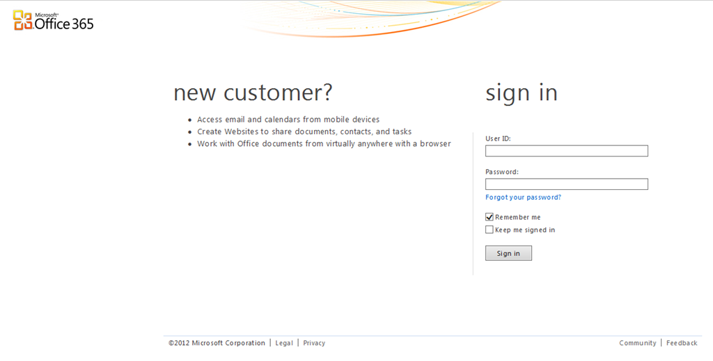 For the login process then we leverage/re-use what Office 365 provides us with – A login page