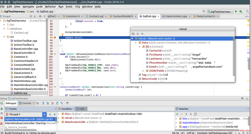 I’m using g++ (compiling with –std=c++14, actually) in conjunction with UnixODBC and FreeTDS (information on how to install these two here in this post) to access SQL Server vNext running on another Linux-based PC. I have structured the solution as an MVC solution, besides having a DAL responsible to perform operations in the database.