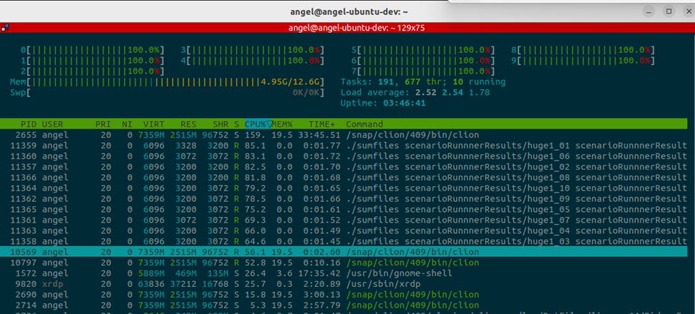 Image 1 – HTOP when multiple instances of sumfiles are running