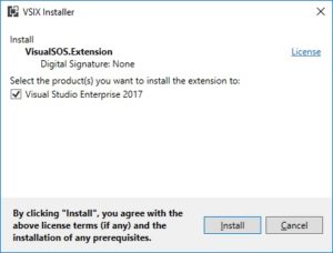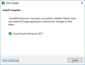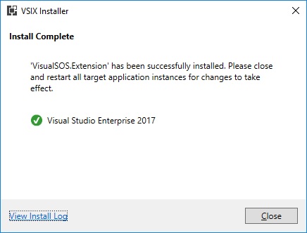 Our resulting VSIX package contains a combination of .NET assemblies, executable (Visual SOS) and native library. Hence, Visual Studio extensions are not limited to managed assemblies but they can have anything in them actually. The images depicted below Visual SOS extension during and after installation.